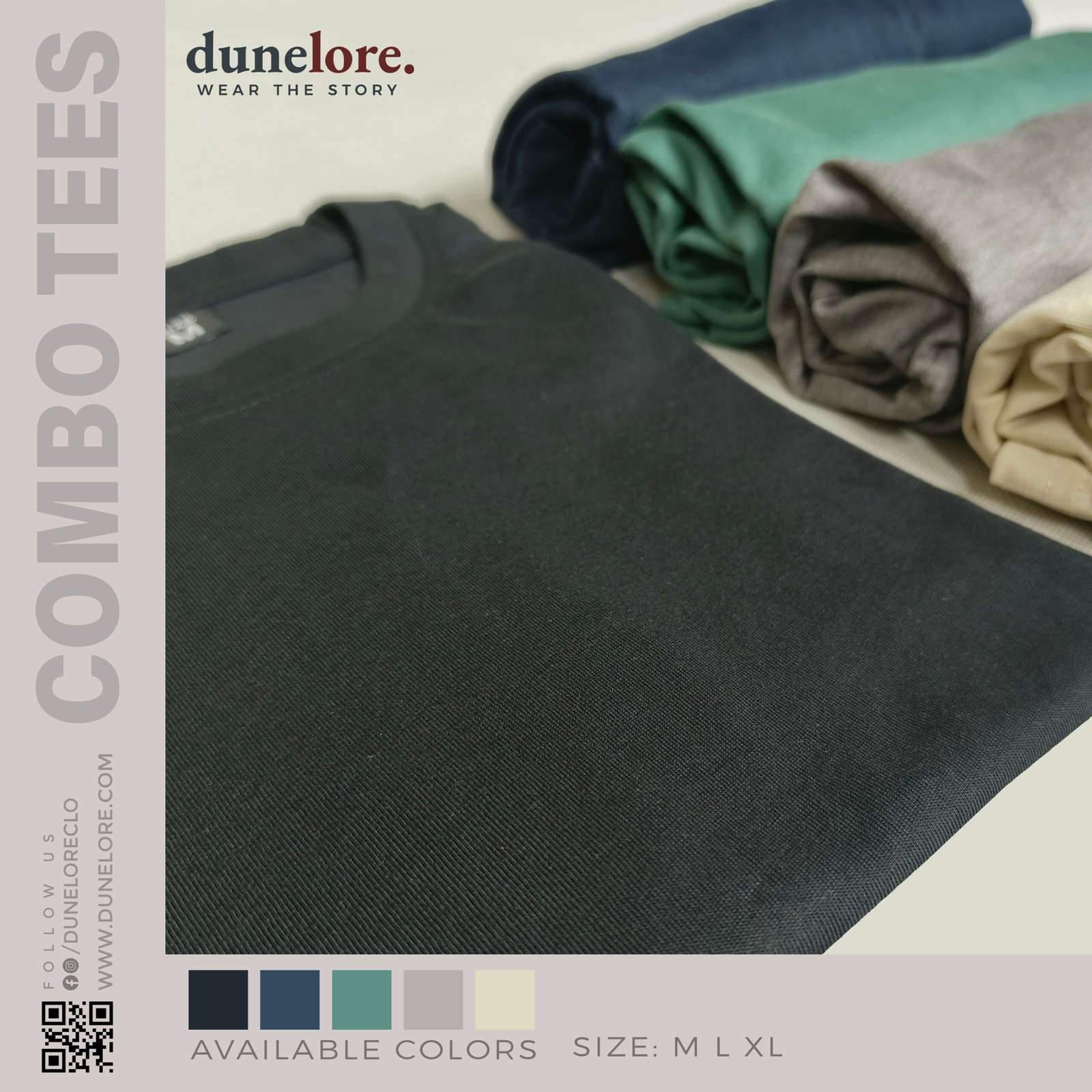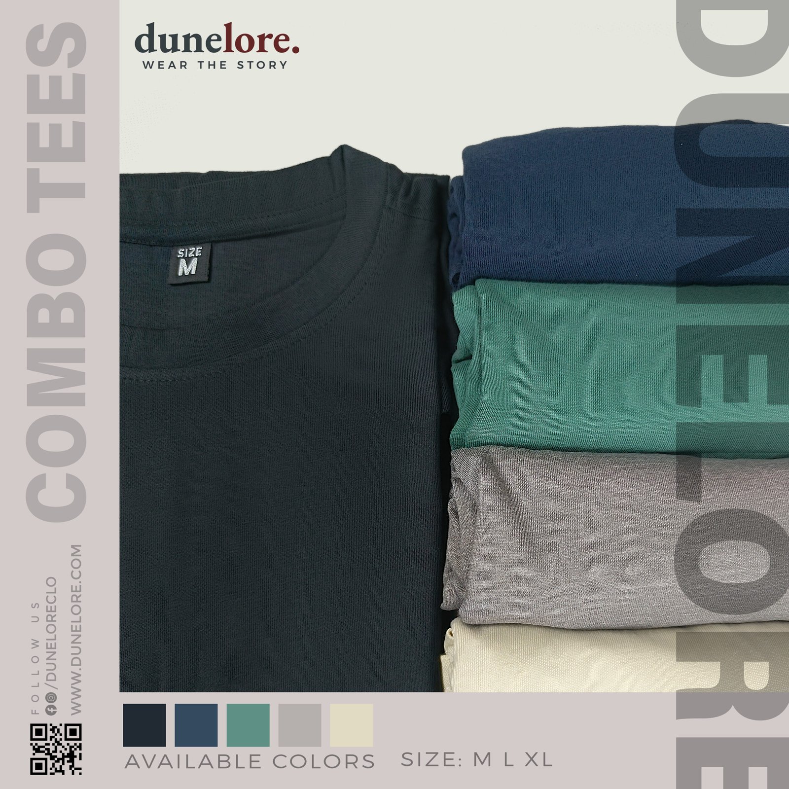 5pc Combo: Green, Grey, Navy Blue, Black, Beige